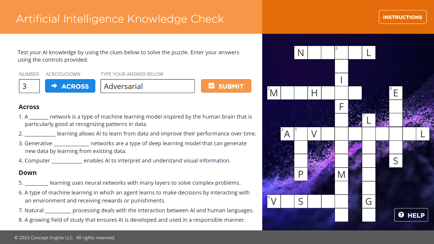Learners can test their AI knowledge as they solve a digital crossword puzzle game. This fun activity highlights the gamification capabilities in Articulate Storyline 360.